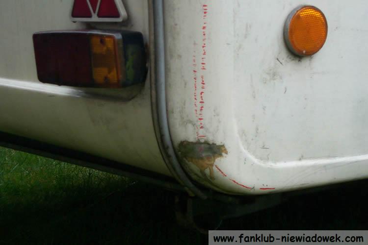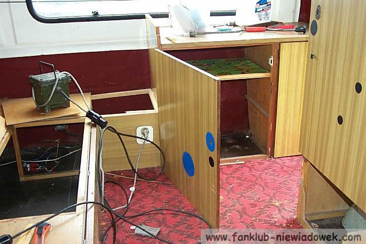 Cześć. Mam chwilkę, by przesłać zdjęcia i komentarz do etapu II mojego remontu. Rozebrałem praktycznie do ostatniej śrubki i nie żałuję. Wszystko przerdzewiałe, brudne, nawet w miejscach, wydawałoby się, z wierzchu zdrowych. Nie udało się oderwać maskownicy jednego okna - trudno. Znajomy żywicą i matą połatał uszkodzenia, wzmocnił osłabione miejsca, a ja przystąpiłem do szpachlowania. Ponieważ przyczepka była mocno sfatygowana, po paru tygodniach życia w pyle wyrównałem jako tako, zużywając 4 puszki. Z ulgą odprowadziłem "moją starą" do malowania, a garaż wreszcie posprzątałem i odpyliłem. Użyłem farby z firmy "Farby jachtowe". Następnie znajomy sąsiad pogłówkował przy instalacji elektrycznej. Resztę tej łamigłówki rozwiążemy po wstawieniu mebelków. W tym momencie poprzykręcałem z zewnątrz wszystko, dając oczywiście pod aluminiowe listwy taśmy, a śrubki wciągnęły lepiącą się masę ku mojej uciesze, boi się zaizolowały. Na podłogę dałem nową sklejkę, bo lżejsza i mocna. Na wszelki wypadek nasączyłem raz impregnatem, który mi został z budowy. Zagłębienia w podłodze wypełniłem paskami styropianu (po budowie), a na całości cienką gąbkę dylatacyjną (też z budowy). Może lepiej było zostawić swobodę powietrza? bo co będzie w razie wilgoci? Pozostawiłem przy nadkolach małe otworki w razie czego. Całość zaizolowałem ekranami zagrzejnikowymi, ale oklejonymi folią z obu stron. Podobno rewelacyjne właściwości izolacyjne. I zaczęła się najgorsza robota - tapicerka. Nie ma się czym chwalić, bo sam to robiłem i szło wyjątkowo opornie i niedokładnie. Wykorzystałem wykładzinę podłogową i Butapren. I tu UWAGA. Nie należy się spieszyć a każdą powierzchnię na noc docisnąć. Pozornie łapie, ale po wyschnięciu z łatwością odchodzi. Dziwne, że w jednych miejscach trzyma na amen, w drugich zaś słabo. A więc dociskać na stałe... Ciąg dalszy nastąpi.