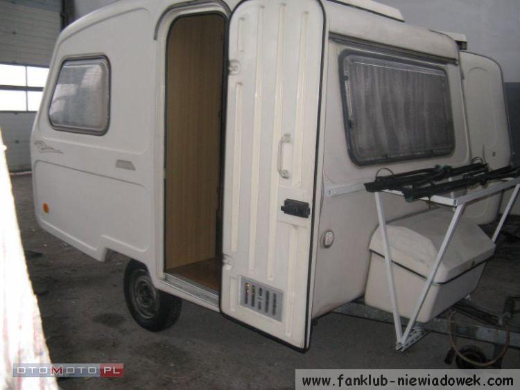 Do pracy nad ramą bagażnika skłoniła mnie chęć zwiedzania na rowerach okolic, gdzie odbywają się zloty. Pieszo można ale zbyt długo to trwa a samochodem osobowym nie wszędzie da się wjechać. I tak bardziej się wtedy trzeba skupić na kierowaniu niż na zwiedzaniu. Rower jest dla tych dwóch opcji najlepszą alternatywą. Po chwili namysłu na tzw. TAK powstał problem przewożenia trzech rowerów. Z różnych powodów nie chcę przewozić rowerów na samochodzie. Moja Niewiadka, N-126e, do tego celu nie jest zbyt dobrze przystosowana. Wewnątrz, na podłodze, nie ma dużo miejsca. Nie ma też dobrego zabezpieczenia aby rowery nie zrobiły, przy okazji podskoków na naszych drogach, otarć okleiny meblowej lub lodówki. Po ściągnięciu wymiarów zakupiłem niezbędne rzeczy w sklepie z artykułami metalowymi oraz na allegro i zabrałem się do pracy. Dociąłem na odpowiednią długość dwa profile zamknięte, wywierciłem dziury montażowe do śrub. Po zamontowaniu do ramy miałem już tylko do odmierzenia i zespawania ostatni fragment profilu zamkniętego, na którym spoczywać będzie kula haka holowniczego. Po zespoleniu w jedną całość i zeszlifowaniu spoin, ramę zdemontowałem aby ją zabezpieczyć przed korozją. Na początek potraktowałem ją odrdzewiaczem a następnie kilkakrotnie farbą podkładową. Na nastepny dzień, po wyschnięciu, pomalowałem ramę emalią białą. Farba schnęła dość długo, więc zabrałem się za rozszywanie kabla, który został zamontowany w puszce, skąd poprowadziłem dwa niezależne przewody instalacji elektrycznej (12V) do przyczepy i ramy bagażnika. Po wyschnięciu farby mogłem zamontować ramę bagażnika do głównej ramy przyczepy. Wzdłuż ramy poprowadziłem przewód instalacji elektrycznej do zamontowanego gniazda wtykowego. Pozostało mi już tylko zamontować kulę haka holowniczego, na której spoczął bagażnik rowerowy. Ostatnią rzeczą do zrobienia była dodatkowa tablica rejestracyjna, którą wykonał pan zajmujący się wyrobem szyldów i reklam. Ze względu na różne warunki atmosferyczne na drodze, tablica jest wykonana z tworzywa sztucznego. Tło tablicy jest wykonane z folii odblaskowej. Jedyną rzeczą, która różni się od oryginalnej tablicy jest to, że litery oraz cyfry nie są wytłaczane. Teraz pozostaje mi tylko podczepiać rowery i spotkać się z Wami na zlocie aby przedyskutować parę rzeczy.