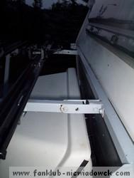 W tym celu stary bagażnik został zdemontowany z ramy. Przy tej okazji zawieszenie również zostało poprawione - ale to już osobny temat. Do spodu ramy zostały przymocowane prowadnice - to właśnie w nie jest wsadzany właściwy bagażnik. Potem już tylko malowanie no i montaż budy. Po zmontowaniu całości, zostaje tylko połączyć elektrykę, ale to drobiazg.